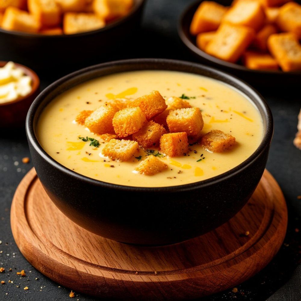 Сырный суп с пшеничными гренками