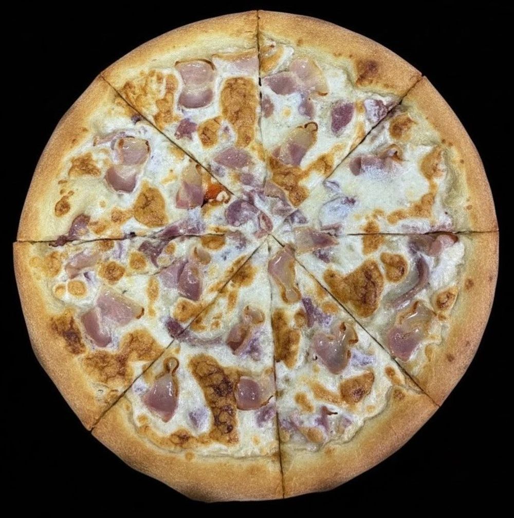 Хрустящий бекон, нежный сливочный соус и тянущаяся моцарелла — звучит как мечта, а на деле это наша новая пицца! Каждый кусочек — это взрыв вкусов: дымная глубина бекона, бархатистая мягкость соуса и волшебная сырная нить, которая так и манит взять ещё один ломтик. Просто, сытно и невероятно вкусно — то, что нужно для идеального вечера!
