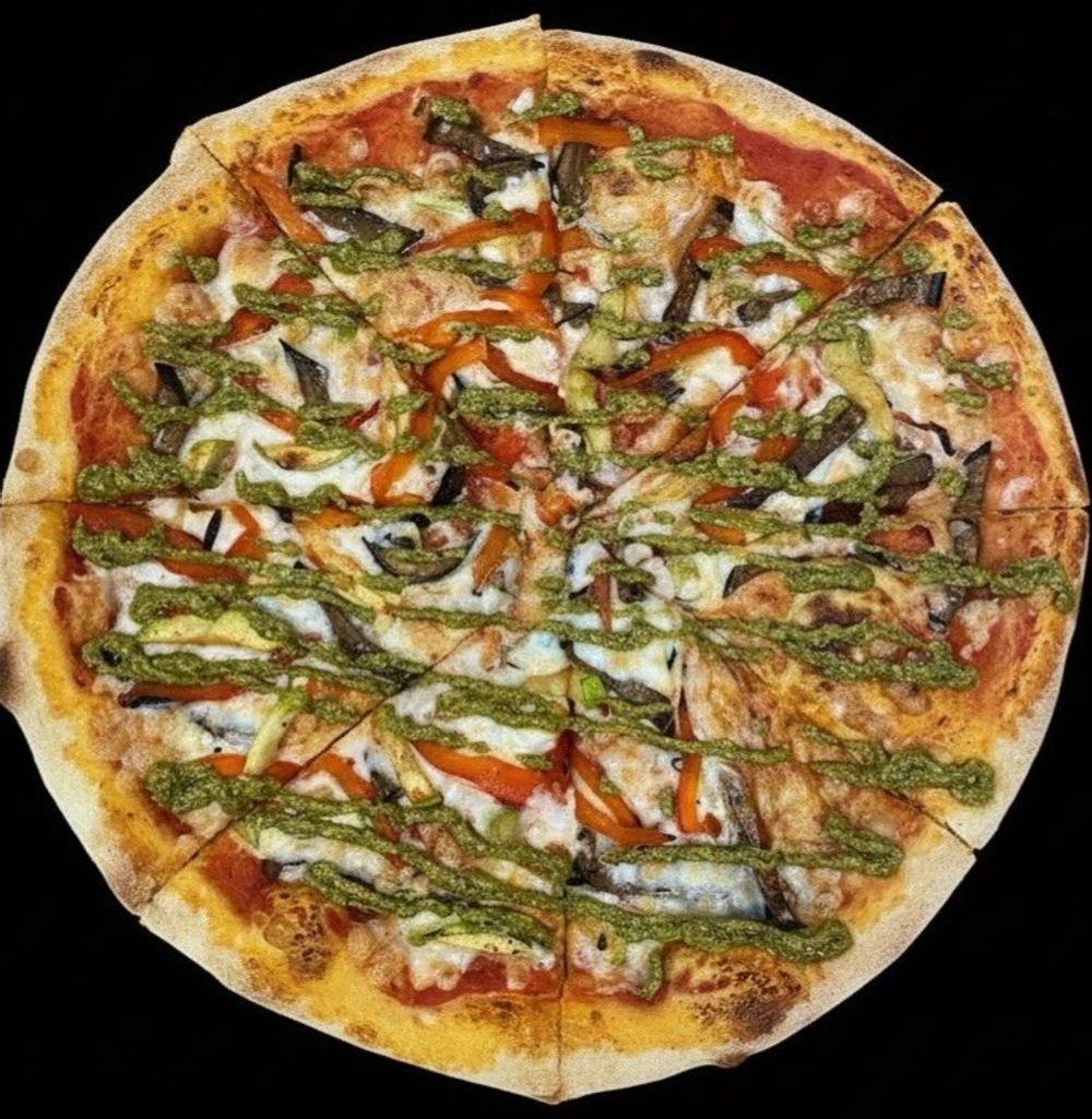 «Песто с овощами гриль» Лето на тарелке: овощи гриль, томатный соус и соус песто под шапкой расплавленной моцареллы. Лёгко, ярко, по‑средиземноморски.