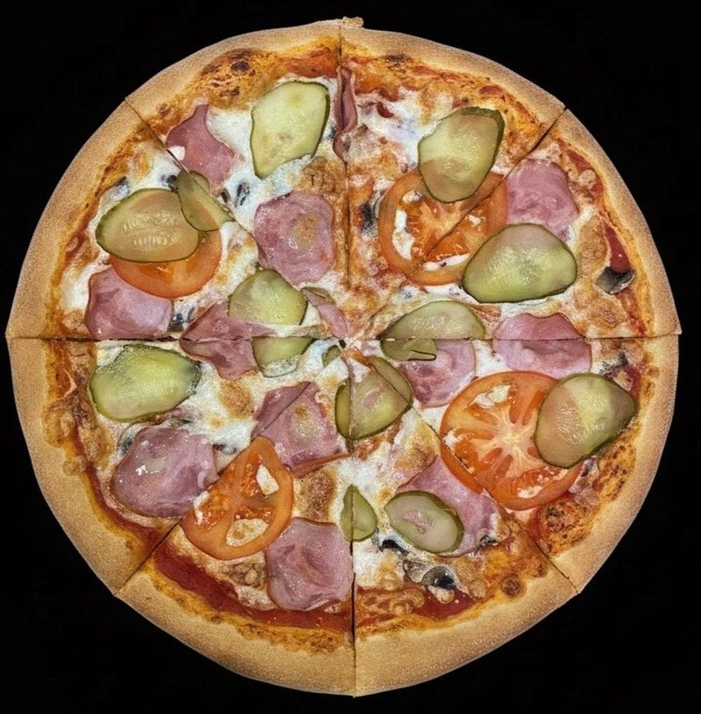 Представьте: тёплый, только что из печи, кусочек пиццы, от которого идёт волшебный аромат… Это наша «Домашняя» — настоящая находка для тех, кто ценит простые, но по‑настоящему вкусные сочетания! Нежный томатный соус, море тягучей моцареллы, ароматная ветчина, нежные шампиньоны и сочные свежие томаты… А теперь добавьте к этому пикантную нотку маринованных огурчиков — их хруст и лёгкая кислинка делают вкус ещё ярче и интереснее! Один кусочек — и вы почувствуете, как настроение улучшается, а мир становится чуточку вкуснее. Идеально для семейного ужина или дружеских посиделок!